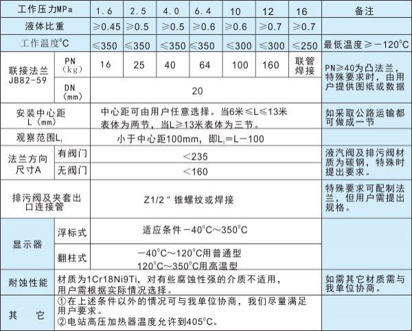 磁浮式液位計(jì)技術(shù)參數(shù)